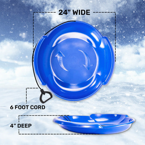 • ADJUSTABLE SIX FOOT PULL CORD – Kids can drag the round saucer snow sled up a hill because they are lightweight and are easy to slide on the snow, or parents can pull a smaller child across flat snow to join in on the fun! The plastic sled also offers maximum stability.