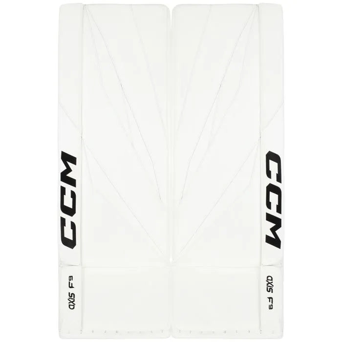 LiteCore™ w/ Single Internal Break: Designed for cross-crease mobility and high velocity rebounds, the Axis F9 leg pads are built around CCM's stiff, LiteCore™ with a more forgiving pre-curved shape and a single internal break below the knee.