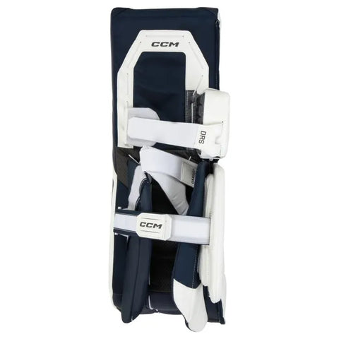 DRS Strap: CCM's adjustable knee strap design allows goalies to choose their preferred fit: Behind the knee to the removable knee wing, down and across to the calf wrap, or entirely removed.