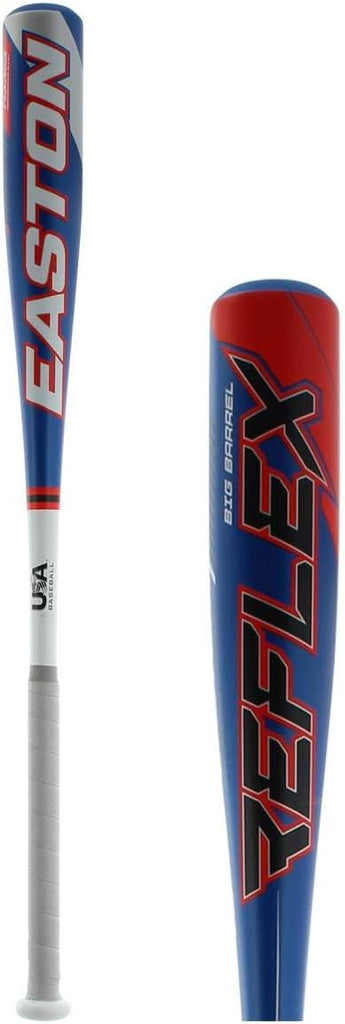 The Easton® Reflex™ -12 is a one-piece aluminum big barrel design constructed of lightweight and durable ALX100™ Performance Alloy. It features a concave end cap and a cushioned Flex™ grip, providing additional comfort in the hands. It is approved for play in leagues and associations that follow the USA Baseball standard.